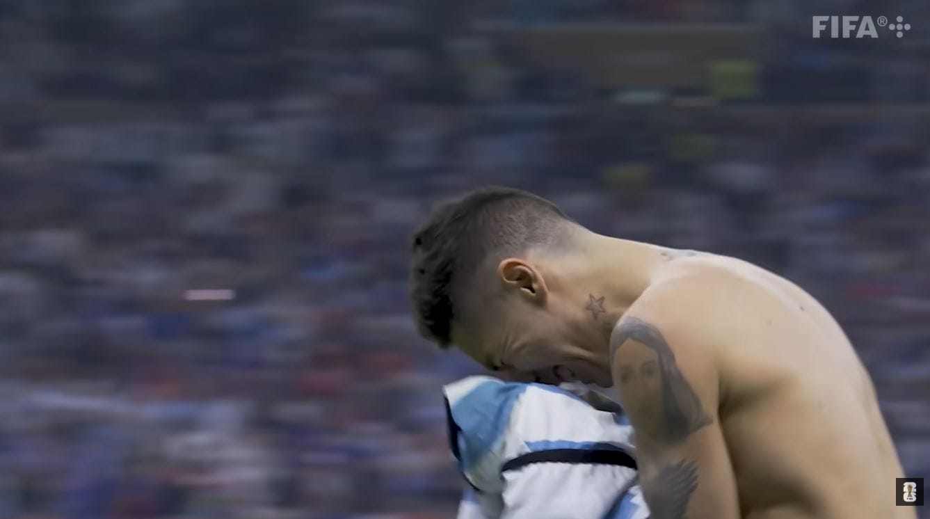 In 2022, during Argentina’s knockout clash versus Australia. Thirteen minutes into this close game, the two sides were scoreless. As the tension built, Argentine fans across the stadium began to rise, singing as loud as they could while whipping their shirts into the air. Translated to English, they sang, “I can't explain it to you, because you won't understand. The finals we lost, how many years I cried for them.”