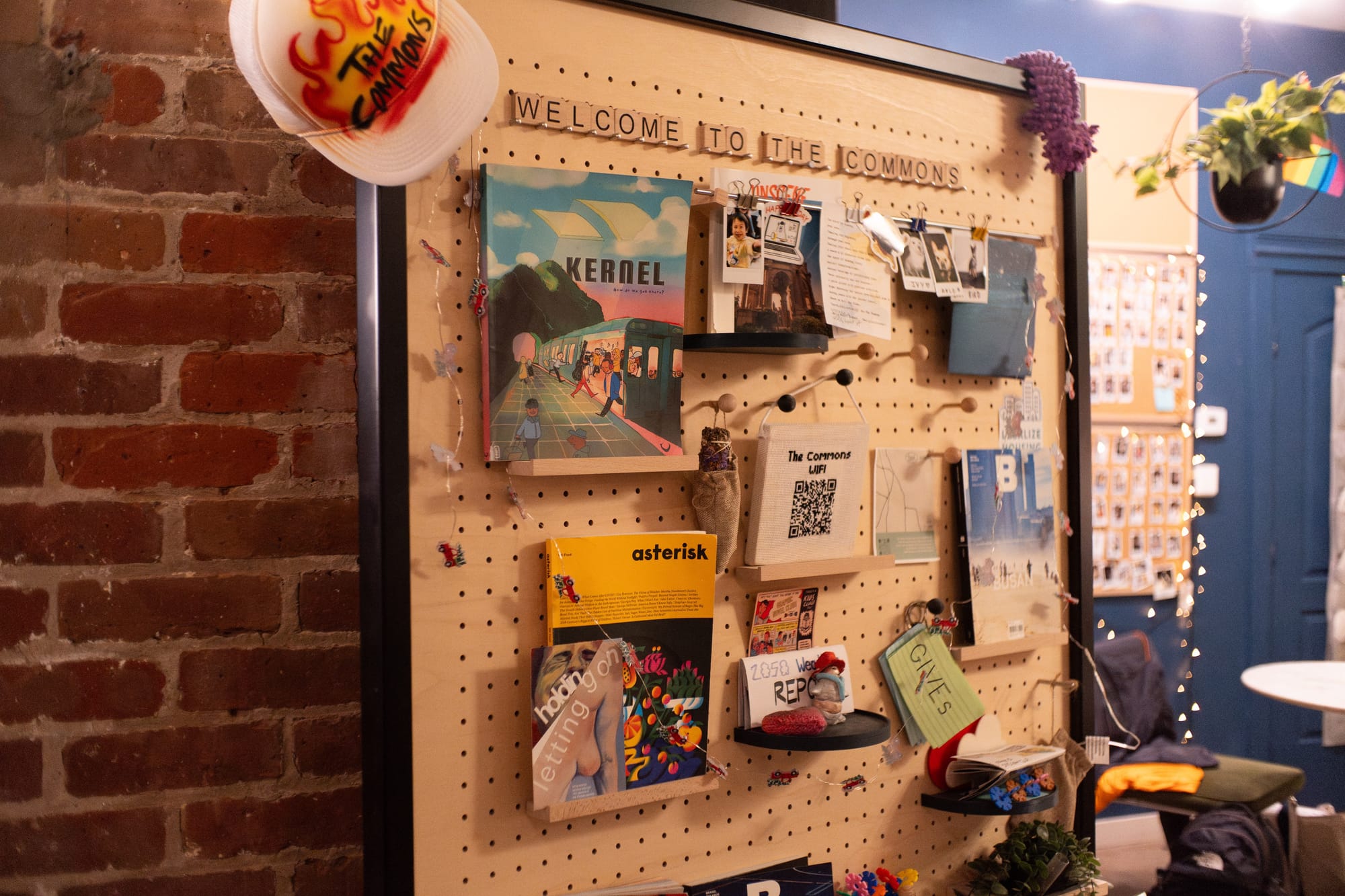 Entering the lobby, I’m confronted by a wall of neatly shelved metal type for different fonts, an open bar, and stacks of the periodicals featured at this gathering: Kernel Magazine and Asterisk Magazine.
