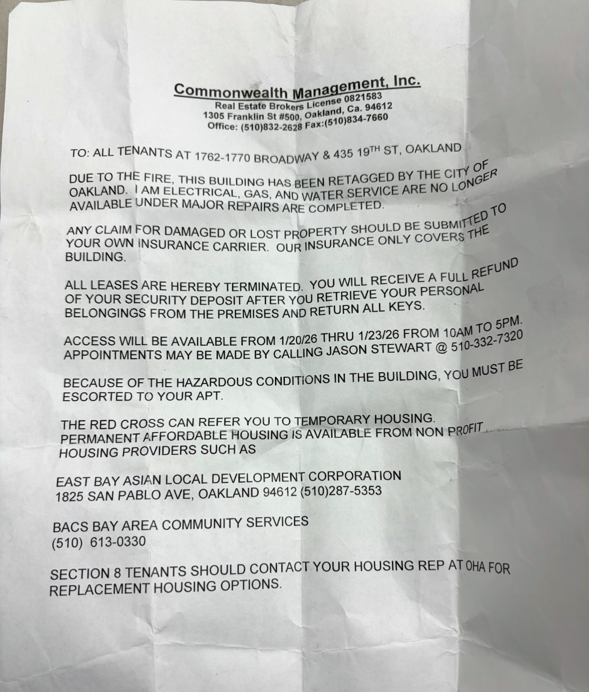 Over three months have passed since the fire broke out at 1770 Broadway – a 47 unit apartment complex in Oakland, California – the largest single instance of displacement in the city since 2023.