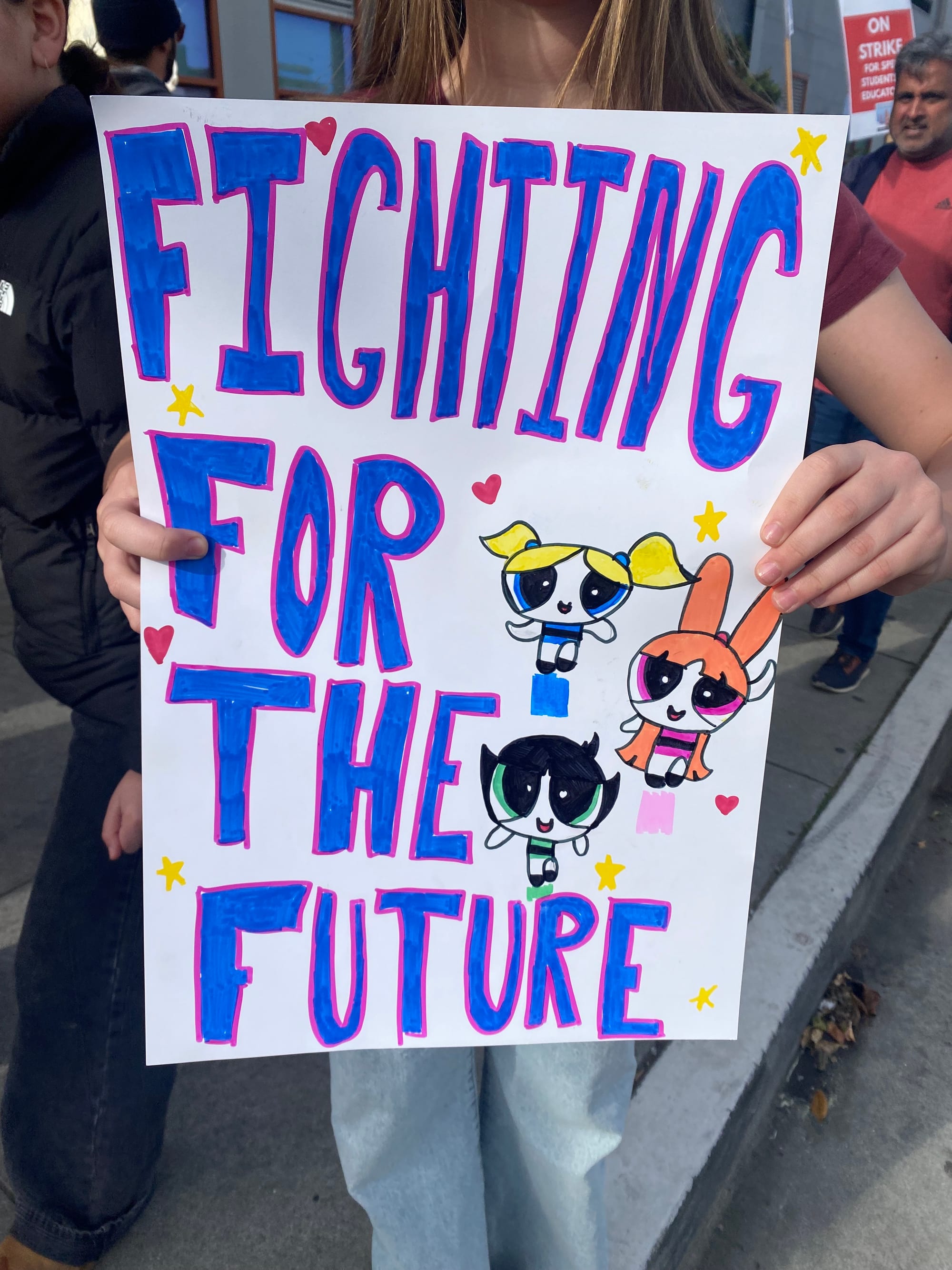 Tsang works with an Extensive Support Needs class, meaning she helps students who might be nonverbal, incontinent, or eat through a feeding tube. “I might have to go visit someone in hospice or go to a funeral,” she said, becoming emotional. “We don’t want to be on strike, we don’t want to be out of the classroom. We want to be with the children, but we are out here fighting for what we need.”